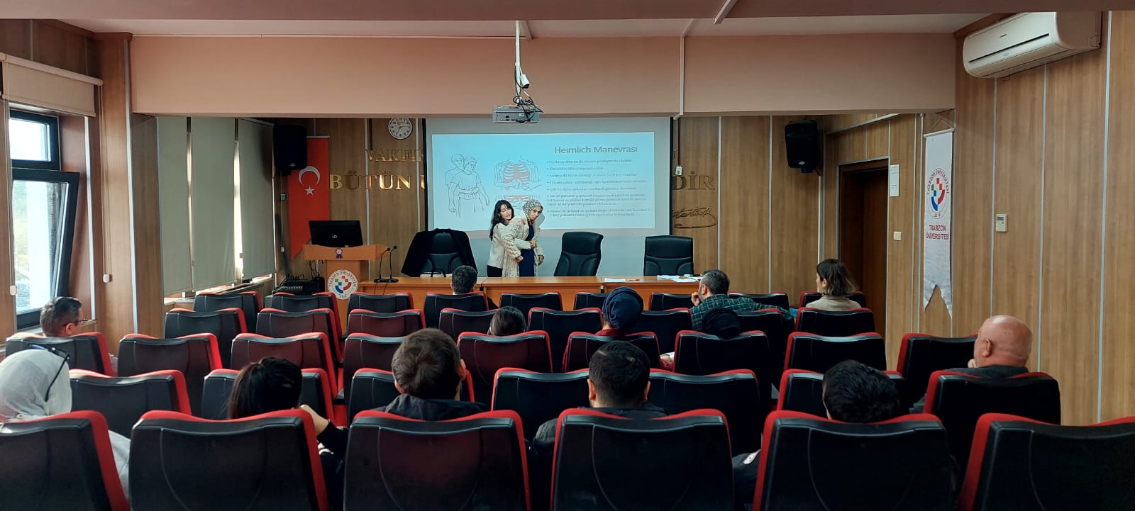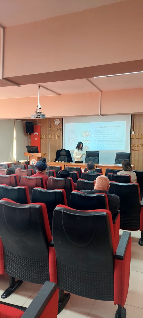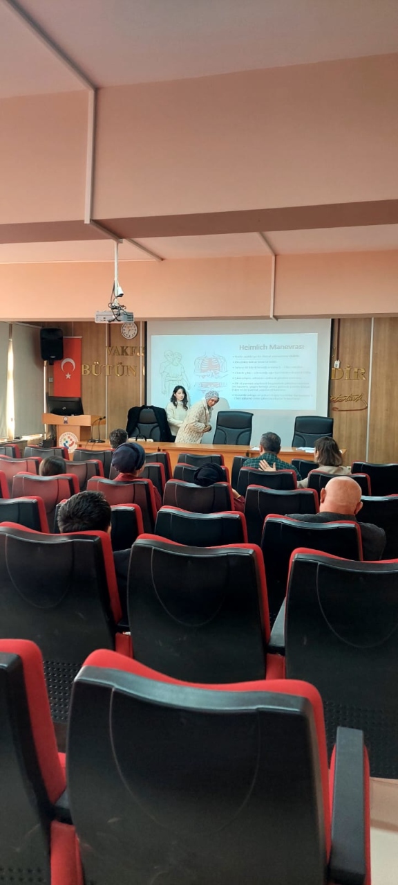 Vakfıkebir Meslek Yüksekokulu akademik ve idari personeline yönelik olarak, Meslek Yüksekokulumuz konferans salonunda temel düzey ilk yardım eğitimi gerçekleştirilmiştir. Eğitime, Vakfıkebir Toplum Sağlığı Merkezi’nden Dr. Dilrüba Nur İSKENDEROĞLU ve Ebe Şaduman ŞAHİN eğitici olarak katılmıştır.