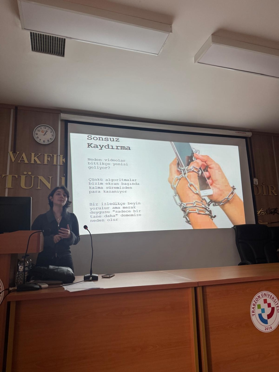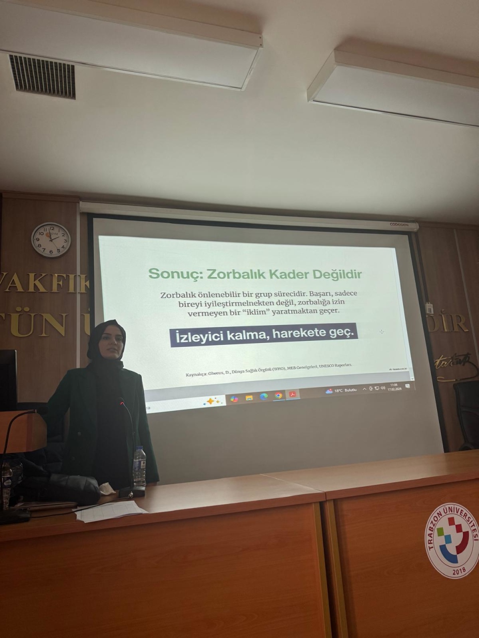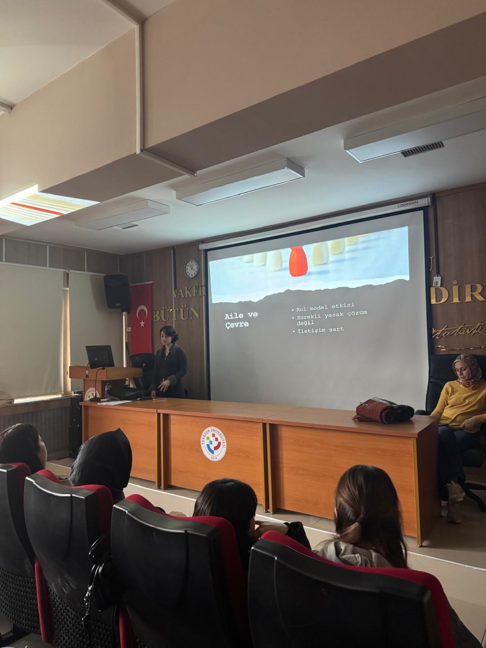 "Dijital Bağımlılığa karşı medyanın bilinçli kullanımı ve Akran zorbalığı ile mücadele" konularında yüksekokul öğrencilerimize Konferans düzenlendi.