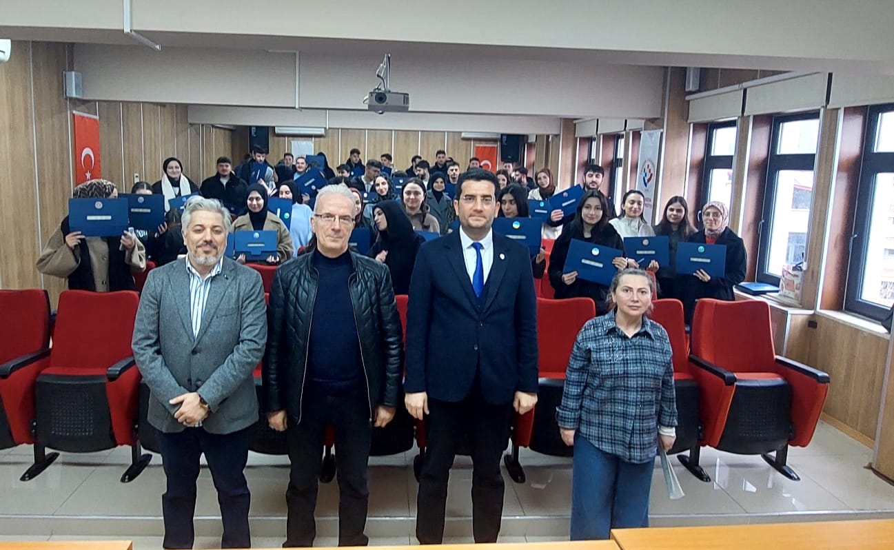 Meslek Yüksekokul Öğrencilerimize yönelik 16-18 Aralık 2025 tarihlerinde Okulumuz Bilgisayar Laboratuvarı'nda gerçekleştirilen Web Tabanlı Muhasebe (Luca Programı) Sistemi Uygulamalı Eğitimi Sertifikalarını takdim etmek üzere 4 Mart 2026 Çarşamba günü saat 13.00'da eğitime katılan 80 öğrenci için Sertifika Takdim Programı tertip edildi.