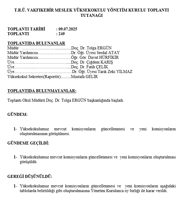 26.03.2025 Tarihli Yönetim Kurulu Kararı için Tıklayınız. |