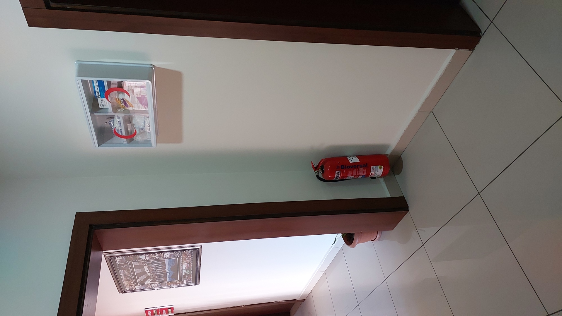 Olası acil durumlara hızlı ve etkili müdahale sağlamak amacıyla binamızda ilgili mevzuata uygun yangın tüpleri ve yangın merdiveni bulunmaktadır. Ayrıca duvarlarda yangın söndürme cihazı kullanma talimatları yer almakta, her katta alarm butonları ve yangın hortumu makaraları hazır halde bulunmaktadır.
