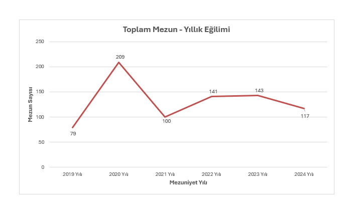 - 2019–2024 yılları arasında mezun sayıları dönemsel dalgalanmalar göstermiştir.