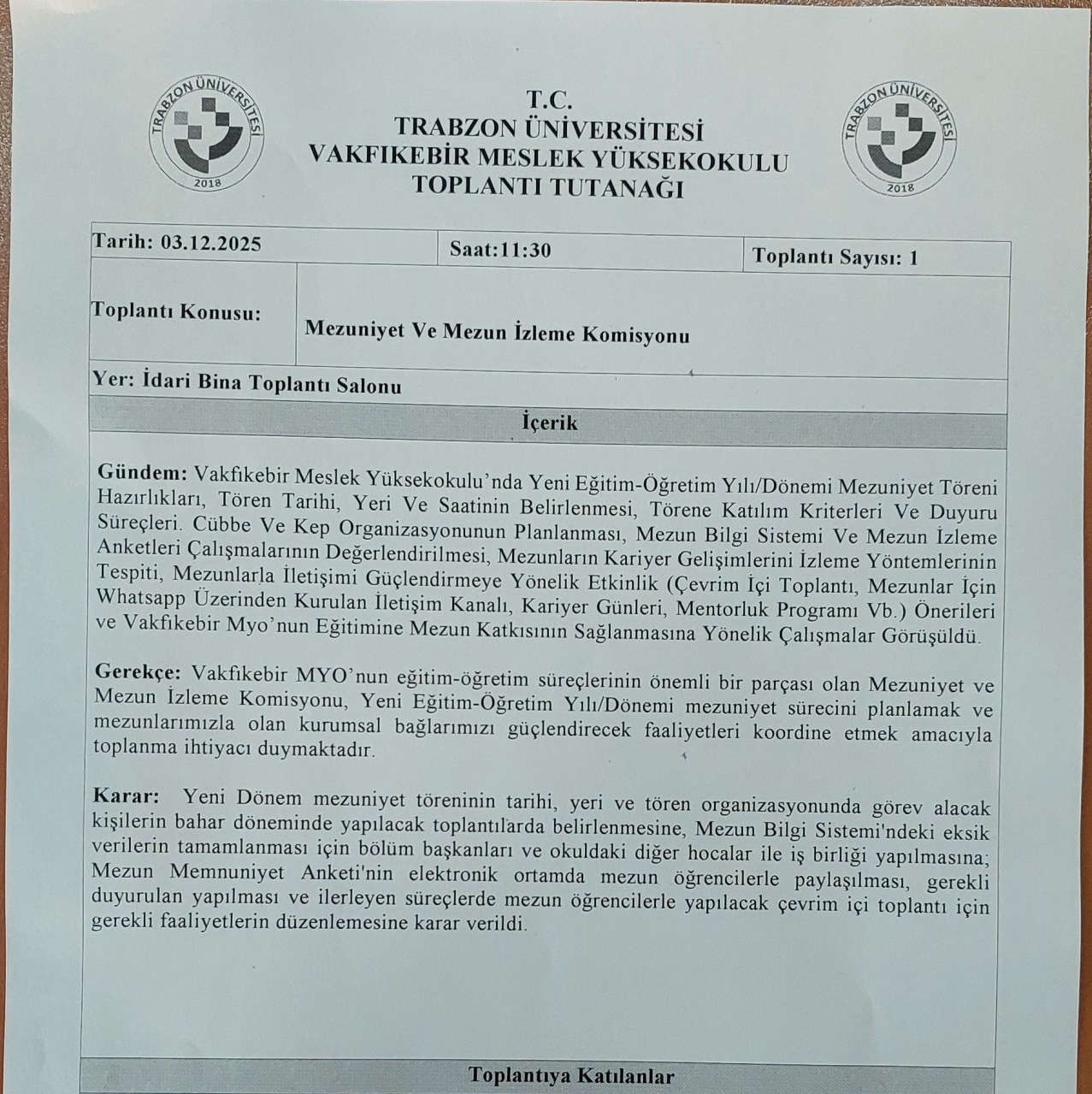 Mezuniyet Ve Mezun İzleme Komisyonu |